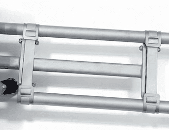 Легкая регулировка длины саней может осуществляться даже при сильно деформированных боковых трубах за счет оригинальных накидных хомутов.